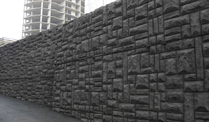 This custom concrete wall transforms structural necessity into architectural art, showcasing the material’s sculptural beauty and design versatility.