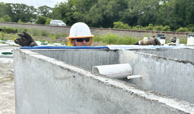 The system comprises Denso’s Viscotaq line, a visco-elastic, non-shrinking coating, which includes ViscoMastic, ViscoSealant, and ViscoWrap (or optionally Viscotaq EZ Wrap). After cleaning the concrete area, installation of the Viscotaq products can begin. For smooth precast sections, ViscoMastic, a semi-solid polyolefin mastic coating, is applied as a thick bead between concrete sections compressed by the weight of the incoming sections to form a continuous watertight seal.