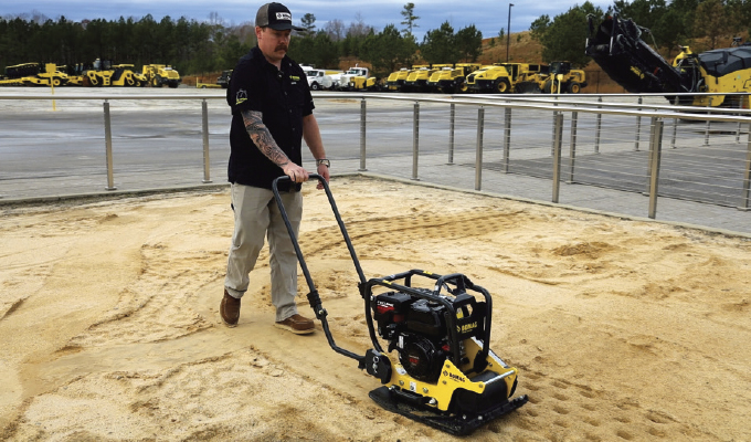 BOMAG’s BP Series of single-direction vibratory plate compactors are built to deliver rugged durability and excellent compaction across a range of applications. The new line consists of six gas engine models offering compaction widths from 12.6 to 19.7 inches. An additional cyclone filter on BP 15/40, BP 20/45, and BP 25/50 models precleans intake air to reduce the amount of dust reaching the main filter to increase the engine’s service life. At the heart of their durable design, the exciter housing is cast into the base plate to minimize vibration-induced wear and eliminate the risk of screws loosening.