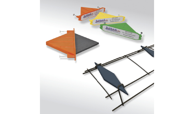 The BoMetals QuicDiamond System provides a cost-effective solution for on-grade slabs. Designed to offer the greatest movement at the joint while maximizing strength, this doweling method complies with ACI 360 design for slab-on-ground requirements. All diamond plates are sawn from hot-rolled steel to ASTM A36 tolerances. Custom baskets are available. The sleeves are engineered for rigidity and easy plate insertion to preserve sleeve integrity. The high-density ABS plastic sleeves and steel plates have a proven success rate of 100 percent at meeting the job demands. Matching plates and sleeves are available in 1/4-, 3/8- and 3/4-inch thicknesses. Made in America.