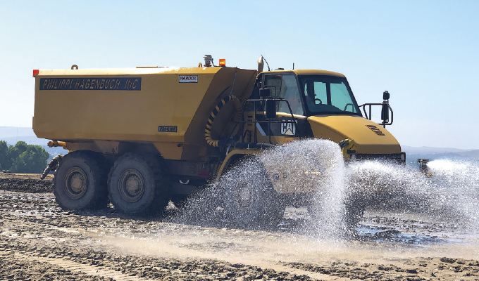 Philippi-Hagenbuch is stocking HiVol Water Tanks fit for the popular Caterpillar 730 articulated haul truck. Customers who invest in an in-stock water tank can get water trucks on the jobsite quickly with a significantly reduced lead time compared to a fully customized water tank. While custom options can take months to manufacture, the in-stock tanks, equipped with all the essential features, typically ship in two to three business days. The 7,000-gallon water tanks fit for the Caterpillar 730 offer enhanced safety and maximum hauling capacity. Each in-stock water tank is fitted with two spray heads, a 1,500-gallon-per-minute (gpm) pump, and a water-level sight gauge.