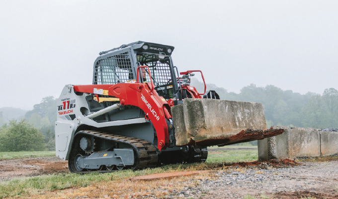 The Takeuchi TL11R3 compact rack loader features new electric-over-hydraulic (EH) controls for greater precision in loader arm, bucket, and travel speed operation. Operators can instantly switch between ISO and H patterns through the machine’s monitor to match their preferences. The TL11R3’s self-leveling, up-and-down feature automatically keeps the bucket or attachment level while raising or lowering the loader arm for improved load handling. Fourteen-pin detent provides continuous power to electrically operated attachments for uninterrupted operation. Operators can also adjust the track loader’s boom, bucket, and travel sensitivity to match their needs for greater control during high-precision work.