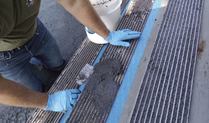Wooster Products introduces the Stair Saver Epoxy Kit, which rejuvenates non-slip stair nosings and treads, restoring them to like-new condition. This unique, easy-to-use kit will restore any brand of nosing or tread where the abrasive fill is missing. Treads repaired with Stair Saver meet or exceed all codes and standards for coefficient of friction. It is far more economical than replacing the empty nosing shells, which are a trip hazard due to the missing abrasives. The Stair Saver Epoxy Kit is ideal for interior or exterior usage on any brand of nosing or tread and can be applied in less than 2 hours. Repaired treads are ready for foot traffic in just 24 hours.